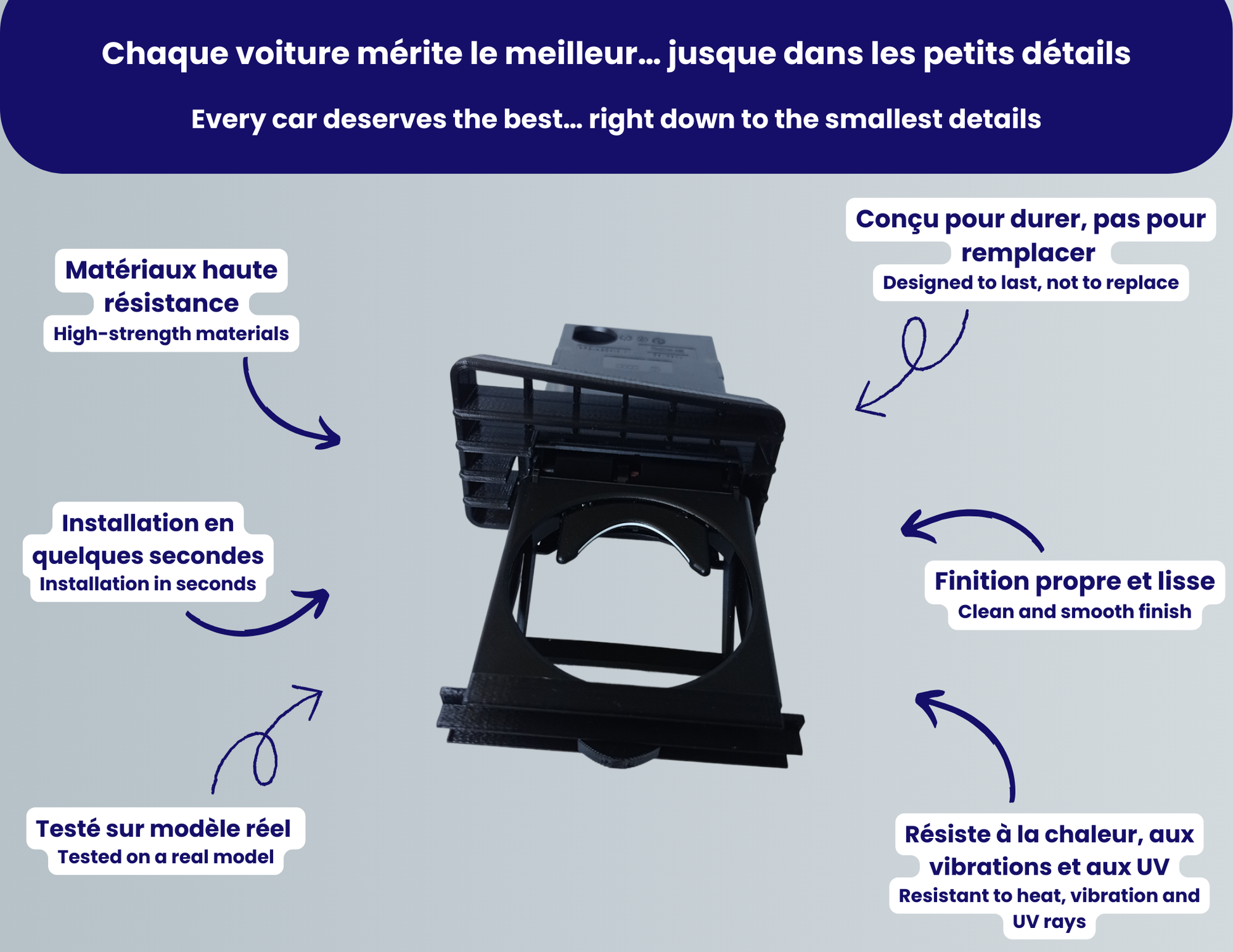 Give your Volkswagen Golf 3 interior style and practicality with this central cup holder perfectly integrated into the original air vents.