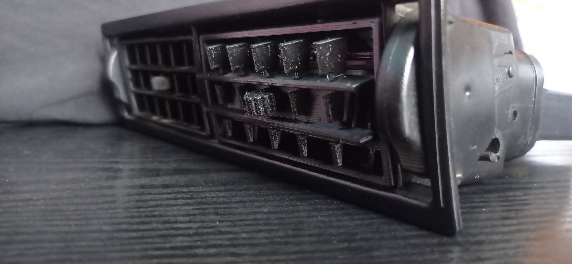 Le mécanisme est conçu pour se glisser dans la grille centrale d’origine ou de remplacement, sans modifier le tableau de bord.